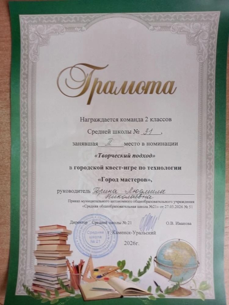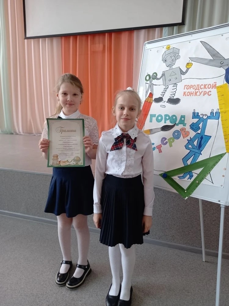 18 апреля, ученики 2 "Б" класса: Кузнецов Тимофей, Боровинских Агата, Шмидт Вероника приняли участие в городской квест-игре по технологии "Город Мастеров".