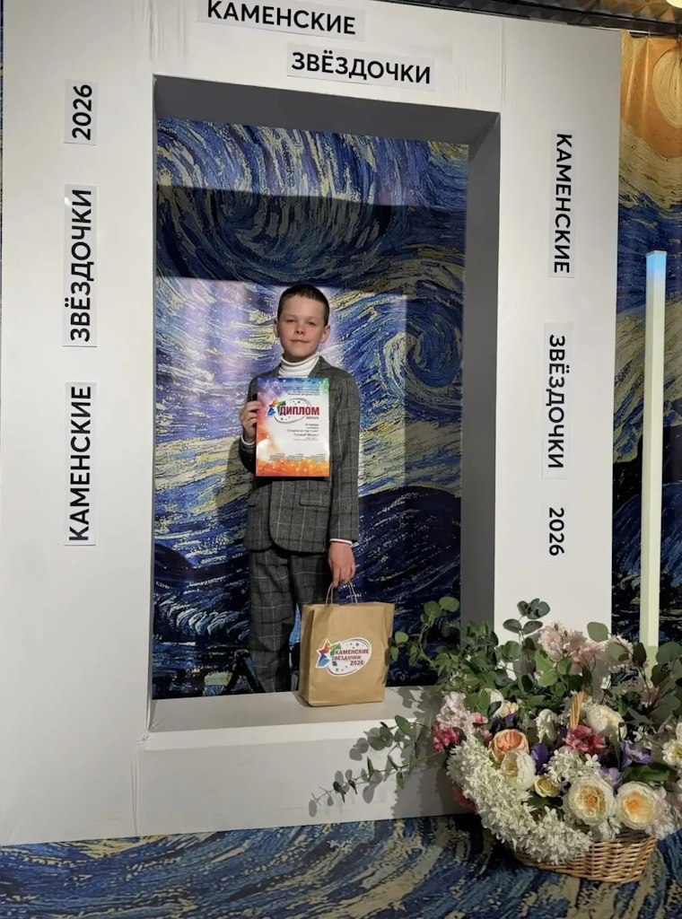 Ульянов Михаил, ученик 3 «А» класса, завоевал звание лауреата III степени на открытом муниципальном конкурсе «Каменские звёздочки — 2026» в номинации «Солисты от 9 до 11 лет».