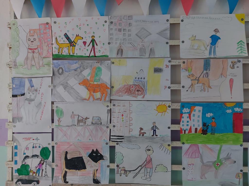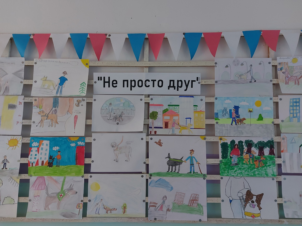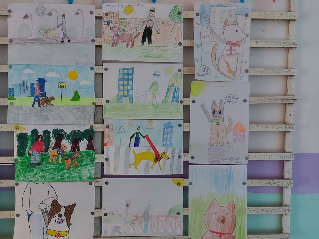 Организована выставка рисунков “Не просто друг”: талантливые учащиеся представили свои работы, посвящённые дружбе и взаимопониманию между человеком и животным. Эти рисунки показывают, насколько значима поддержка собаки-поводыря для каждого, кому судьба подарила её.