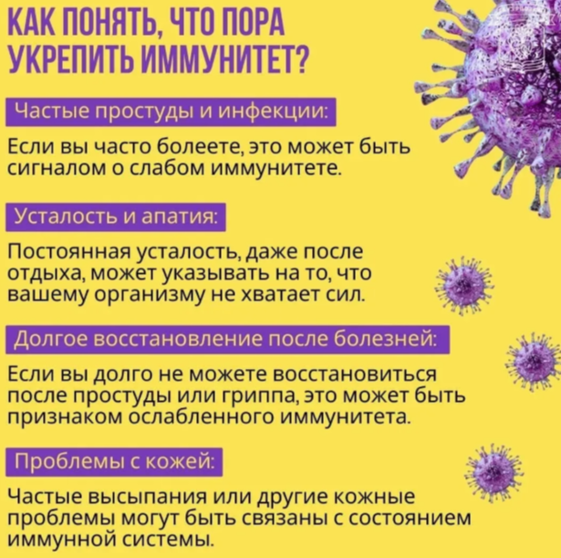 Здоровое питание Правильное питание играет ключевую роль в поддержании здоровья иммунной системы. Организм нуждается в достаточном количестве витаминов и минералов, чтобы бороться с инфекциями. Особое внимание стоит уделить следующим элементам: - Витамин C: способствует выработке антител и укрепляет иммунитет. Источники витамина С включают цитрусовые, киви, болгарский перец, черную смородину