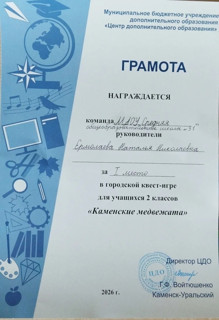 11 апреля,ученики 2 "А" класса: Беляков Кирилл, Фархиуллина Анна, Белых Дарья, Кордзая Даная приняли участие в городской квест-игре по русскому языку "Каменские медвежата" - захватывающем мероприятии, где знания встретились с приключениями. Ребята отправились в увлекательное путешествие по станциям, на каждой из которых их ждали интересные задания. Каждый этап требовал не только знаний, но и командной работы, логики и смекалки.