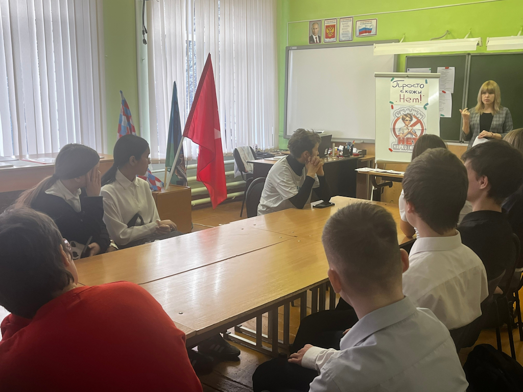 18 ноября в Центре детских инициатив прошло профилактическое мероприятие «Скажем наркотиками НЕТ!» для учащихся 7-11 классов. Заместитель директора Куликова Анастасия Сергеевна и ученицы 11 класса Попова Ульяна, Замятина Виктория и Носкова Ксения провели беседу о вреде наркотиков, ответственности за их изготовление и незаконный оборот. В конце мероприятия все учащиеся получили раздаточный материал, который будет напоминать ребятам, что наркотики- это зло! Благодарим советника директора по воспитанию Крохалеву А. С. и школьного психолога Чадову Е. А. за помощь в проведении мероприятия!